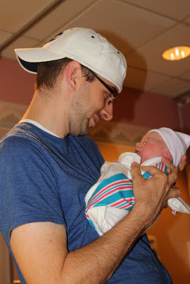 So as for the labor. Because I wasn't really in 'active' labor, they essentially had to induce me. Once your water breaks, you can't use many of the cervical ripening agents anymore. So they gave me cytotec (orally) to get some contractions going. I wasn't sure how well it would work, but within a half hour or so, I was starting to feel it. I took the cytotec around 7 pm and we had to wait 4 hours before starting pitocin. I was only about 2 cm when we started. The contractions became very regular and the last couple hours of that time period they were pretty dang strong! I planned to get an epidural at 11 when they started pitocin and checked me again. 11 pm came, they checked me, I was 4 cm...but anesthesia was not available at the moment. When he got back to the floor an hour later, they called a code blue from another part of the hospital so he had to rush to that! Another hour and I finally had that epidural. I don't know why I ever imagine going without. It was such a relief. Dr. Sherm (the doc on call whom I had never met before but ended up LOVING) came and broke the rest of my amniotic membrane. And at 315 am when they checked me it was VERY apparent that the moment was about to happen! We would finally find out the gender. Finally get to see if my grandma was right, or if my hunches were on track. Nathan got to suit up and help with the delivery, which was really fun for him. He delivered the head and Dr. Sherm helped him ease the rest of the body out. It seemed like an eternity waiting for Nathan to catch a glimpse of the private parts! I just watched Nathan, waiting for him to say 'boy', when a very surprised and happy smile came over his face as he said, somewhat questioningly, "It's a girl!!!!!". I could not believe it. I still can't believe it. I don't know what surprises me more...how wrong my feelings were, or how right my grandma's dream was! And as my dad stated that day, "If it's a girl, I'll be more convinced than ever that God is a poet". Such a special day. Heavenly Father took my Omi back home, and sent us a beautiful little girl. The tears flowed as I held her in my arms early that Monday morning. I felt so blessed.